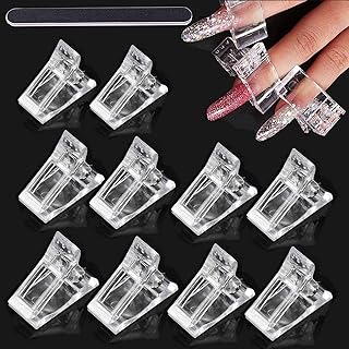 10pcs Pinces à Ongles Transparent en Gel,Clip Ongles,Pince à Ongles Transparent Plastique,Clip transparent Ongles Extension pour Manucure et Nail Art(+Lime à Ongles)