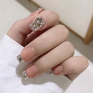 Sethexy Moyen Brillant Faux ongles Rose Briller Coller sur les ongles Carré Faux ongles Ongles avec de la colle 24 pièces Acrylique Bouts d'ongles à presser pour les femmes et les filles