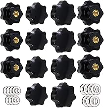 Greluma 14 Pièces Bouton de Serrage à Filetage Moleté M6 et M8,Poignée en Etoile, Boutons à Main en Forme d'étoile Bouton de Serrage en Plastique Noir avec Rondelles