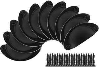 STARVAST 12Pcs Poignée de Coquille Vintage pour Tiroir Armoire Meuble Cuisine, Fer Incurvé Bouton de Porte de Placard Retro 8.2 cm x 3.5 cm, Poignée Bouton de Porte Décoration avec Vis - Noir