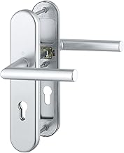 Hoppe Porte d'entrée Poignée de porte Amsterdam – La Norme Din éloignement 92 mm, argent anodisé, plaque longue Profil Protection pour épaisseur de porte 67–72 mm, sans Kern Cylindre, contrôle : RC2 après virole en 1906, 1 pièce de sécurité
