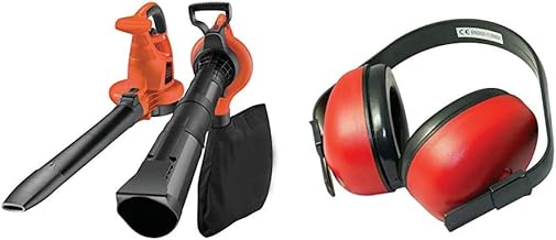BLACK+DECKER GW3030-QS Aspirateur, Souffleur, Broyeur de Feuilles Filaire - 14 m3/Min - 50 L - 1 Embout concentrateur et 1 Sangle 3000W, Rouge/Noir, & Silverline 633815 Casque Anti-Bruit SNR 27 DB