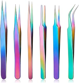 6 Pièces Pince à Épiler pour Extension de Cils Outil Applicateur de Cils Droit et Courbé Pince à Épiler en Acier Inoxydable Brucelles de Précision pour Extension de Cils, Dégradé de Couleur
