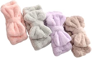 Minkissy 4pcs arc bande de cheveux doux corail polaire bandeau turban mignon bowknot arc maquillage douche heairbands headwraps pour se laver le visage