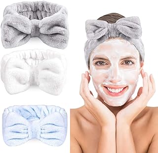 Chilits 3pcs Bandeau Facial Bandeau, Cheveux Make Up Head Wrap Bowknot Spa Bandeau Serviette Extensible, pour Le Lavage du Visage Bain Maquillage Sport Douche Couverture du Visage Bain Nettoyage