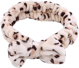DYSCN Mignon Spa Bandeau - Imprimé Léopard Noeud Bande De Cheveux Femmes Maquillage du Visage Bandeau Doux Corail Polaire Tête Wraps pour Femmes Douche Lavage Visage