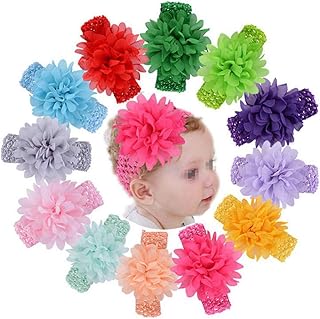 Lot de 12 bandeaux de cheveux en forme de fleurs élastiques pour nouveau-né, filles, tout-petits, et jeunes enfants