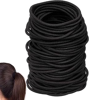 JZZJ 100 bandes de cheveux élastiques, supports de queue de cheval élastiques pour cheveux, pas de métal pour femmes filles enfants hommes cheveux épais noir