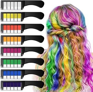 EZCO Craie Cheveux, Coloration Temporaire Cheveux Craie Peigne 8 Couleurs, Lavable Non Toxique Kit Coloration Cheveux pour Enfants Filles Adults Fête Cosplay Cadeau