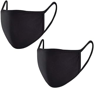 Unisexe Noir Revêtement du Visage en Tissu Coton Lavable Réutilisable Respirant Bandanas Bouche Écharpe Mode Visage Multifonction Foulard Balaclaves pour Homme et Femme (2PCS, A)